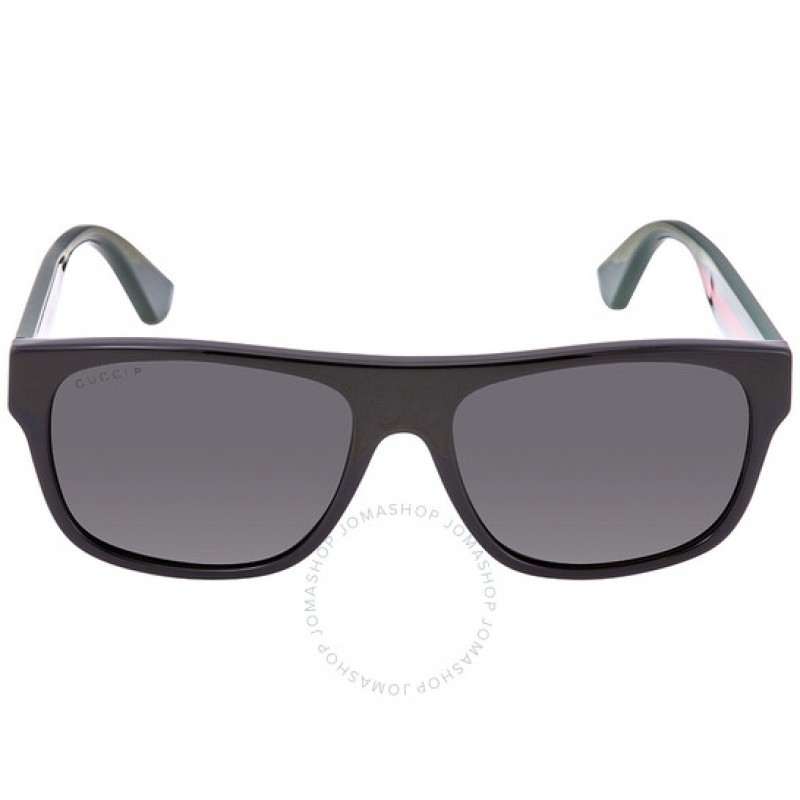 Gucci Sunglasses. Series number: GG0341S. Color code: 002. Shape: Rectangular. Lens Width: 56 mm. Lens Bridge: 17 mm. Arm Length: 150 mm. 100% UV protection. Polarized. Frame Material: Acetate. Frame Color: Black. Lenses Type: Polarized Grey. Rim Style: Full-Rim. UPC/EAN code: 889652155623. Gucci Polarized Grey Rectangular Men's Sunglasses GG0341S 002 56.
